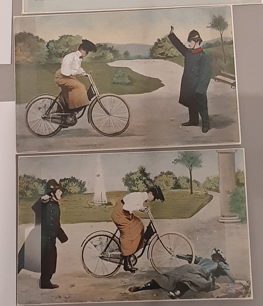 This was in York Castle Museum, as part of an exhbit on exercise through the ages. Originally produced to highlight the importance of cycle safety, the whole overdramatization of scenario is hilariousand (even though I am the first to accept it does feminism no favours).