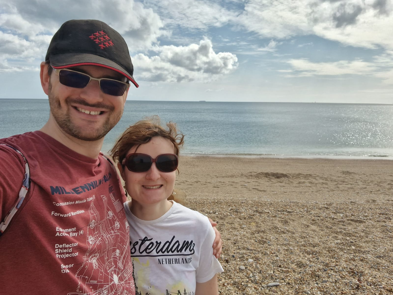 Slapton Sands (beach and WWII memorial). Got our steps in and relaxed on the pebbly beach, taking in the sounds of local nature and the sea (relaxation somewhat broken when Ben said “look! There’s a dead crab near us”)