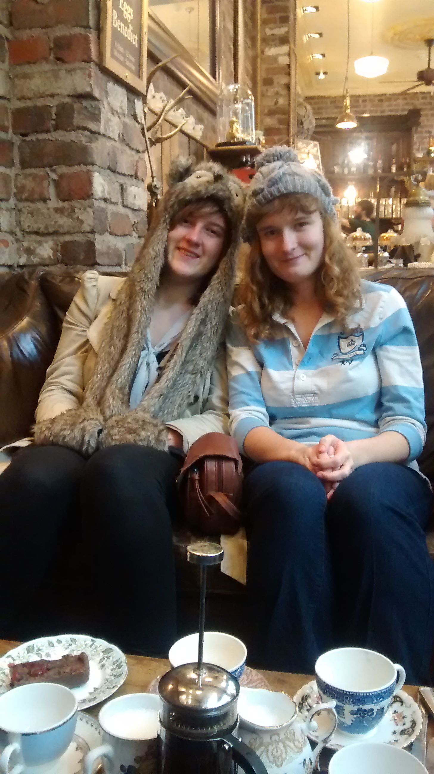 …Because a) it was a cold day and a coat was needed b) it’s a laid back photo taken with friends and c) when I didn’t have my hood up this happened: