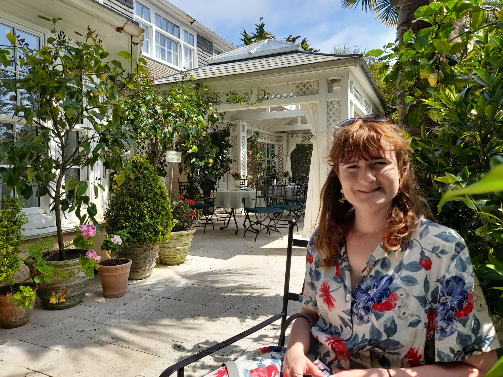 (Eager eyed readers will notice that the sea is not located on the balcony or anywhere near said author.)